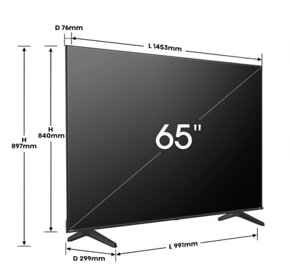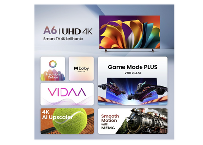65A6Q - TV LED 65'' HISENSE / 4K UHD / 164CM / SMART VIDAA / NETFLIX-YOUTUBE-PRIME VIDEO / SHARE TV / APPLE HOME