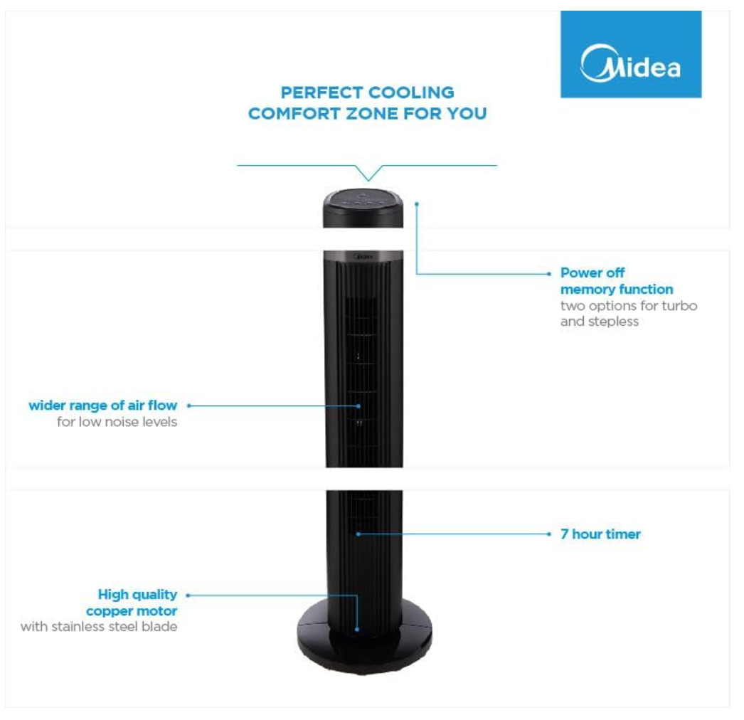 MIDEA VENTILATEUR TOUR IVOIRE – TELECOMMANDE - FZ10-18TRB