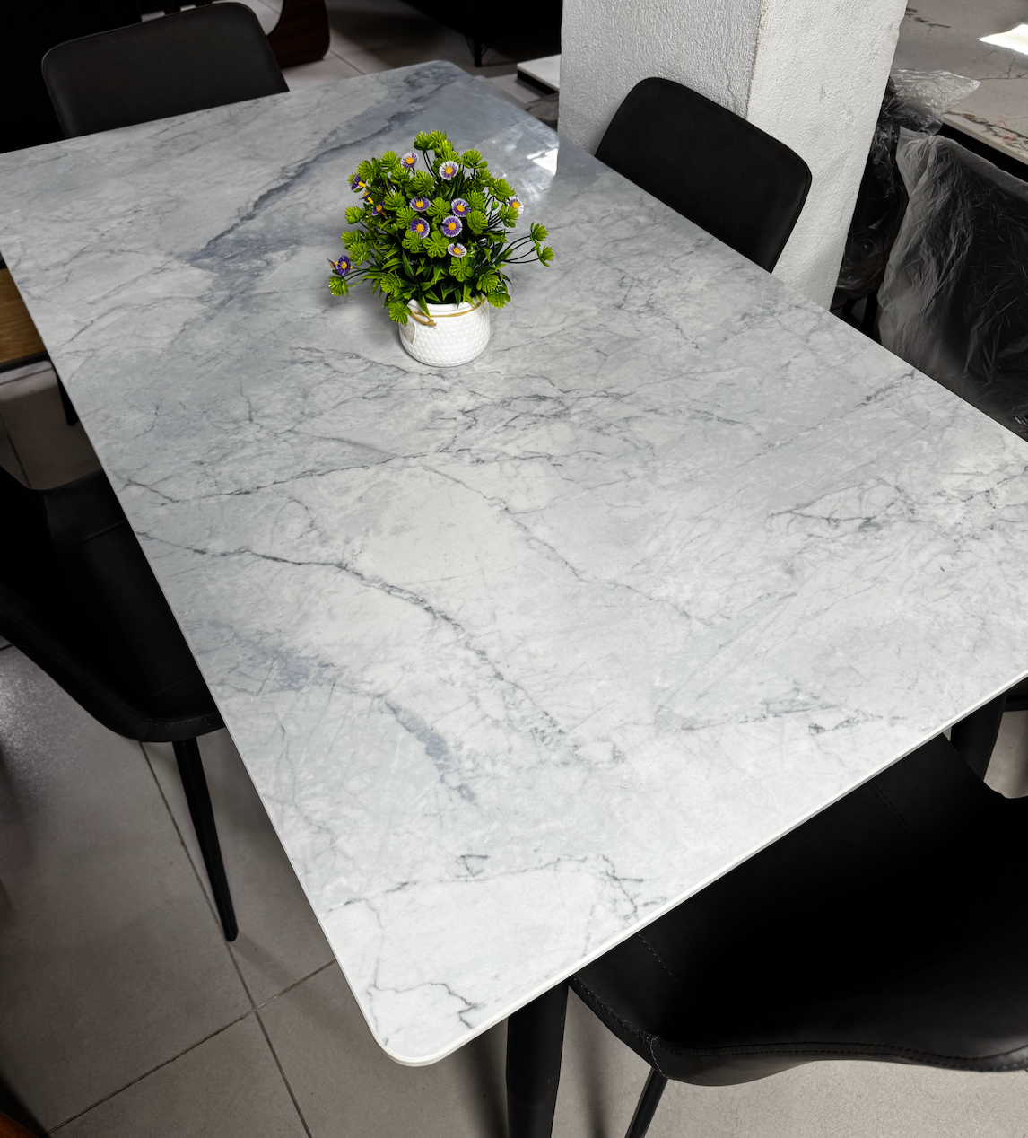 Table A Manger Marbre + 4 Chaises - Gris